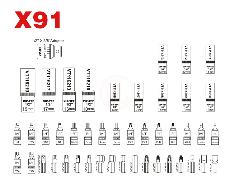 Vip-Tec Detaylı Lokma Takımı 1/2 İnç - 1/4 İnç 89 Parça - VT114189