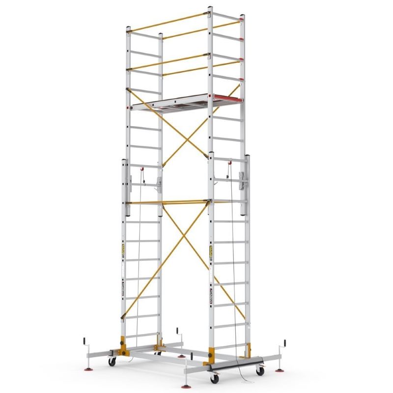 TeleSafe İki Parçalı Alüminyum iskeleler, özel mafsal sistemi ile kolaylıkla boyu ayarlanabilir, güvenli, hafif, kolay sökülüp takılabilir yapısı ile bir çok alanda hizmet vermektedir. Sağlam Alüminyum konstrüksiyon üzerine kurulan yapı, çelik denge ayakları ile güçlendirilmiştir.