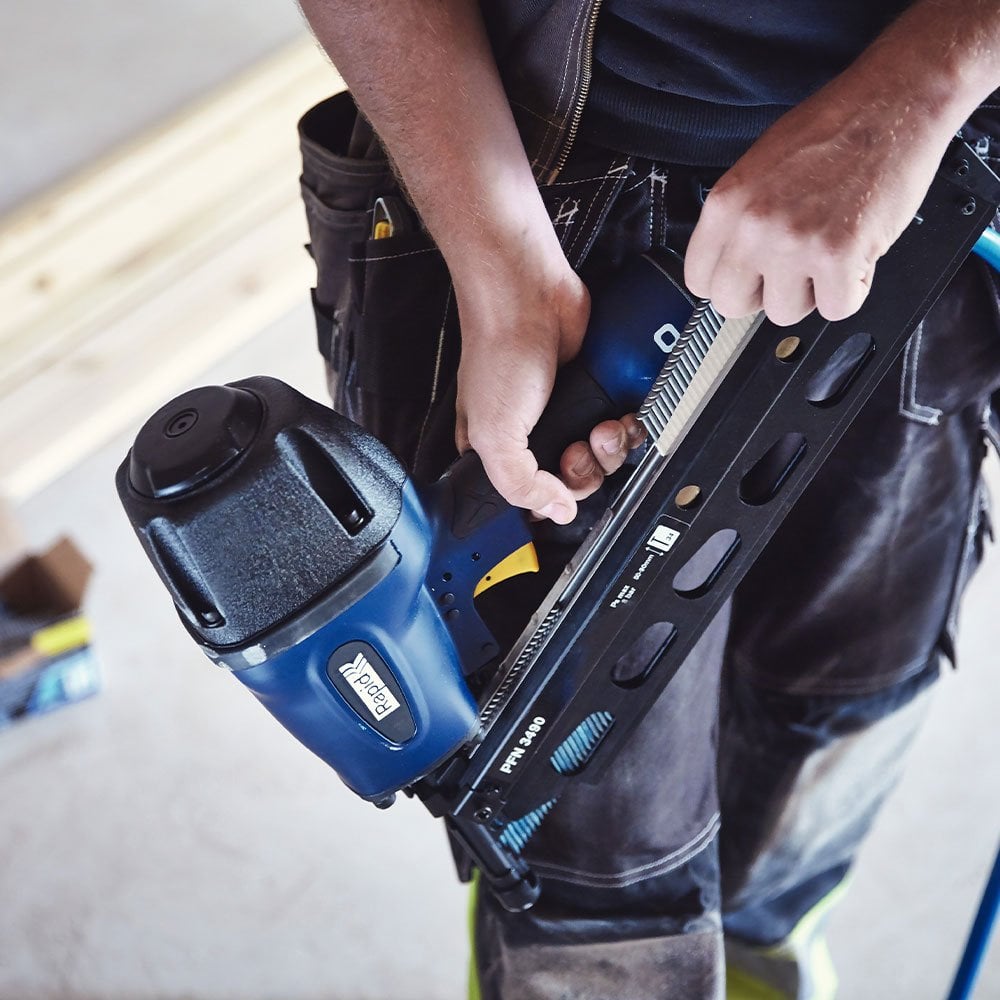 - 34° açı, kağıt ile bağlanmış – şerit başına 25 çivi.