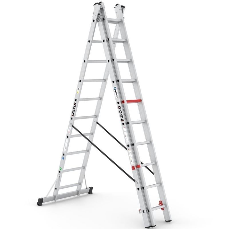 Pimli-kanallı özel mafsal sistemi ile düz konumda kolayca sürgülü merdiven konumuna geçebilir. Yan desteklerle güçlendirilmiş denge ayağı sayesinde güvenli bir çalışma ortamı oluşur.