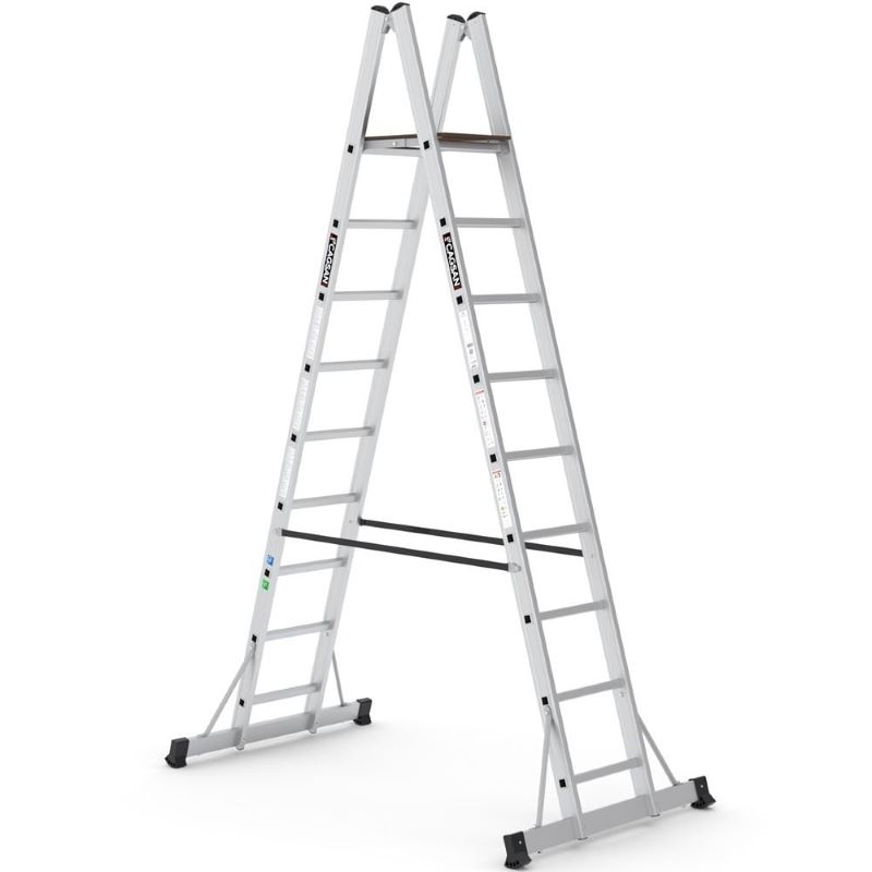 Platformda, merdiven üzerinde çalışan personelin rahatlığı ve dengesi düşünülerek 15mm WireMesh kaydırmaz filmli plywood kullanılmıştır. Geniş denge ayakları ve alüminyum destek lamaları ürüne ekstra bir güvenlik sunması için tasarlanmıştır. Mafsaller ve açılır kapanır makaslar ağır çalışma koşullarında bile uzun ömürlü kullanıma uygun olarak kaliteli malzemeden imal edilmiştir.