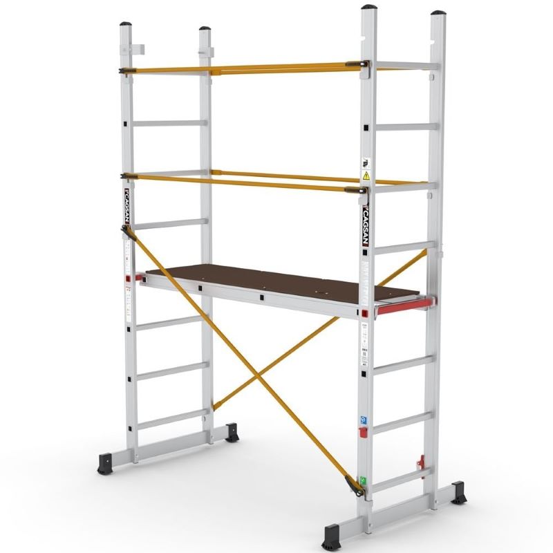 Yanlamasına bağlanan çelik boru sabitleyiciler ve platformdaki korkulukla güvenli çalışma ortamı sağlanmıştır. Kauçuk ayaklarla kayma riski ortadan kaldırılmıştır. Yanlara doğru genişleyen ayaklarla sallantısı engellenmiştir. Hafif, sağlam, güvenli ve uzun ömürlü bir tasarıma sahiptir.