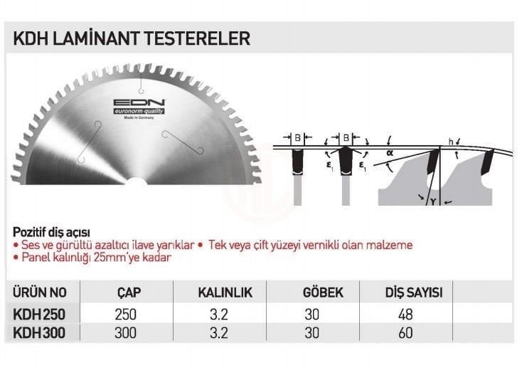 EDN Laminant Daire Testere Bıçağı KDH 250x3,2x30 mm 48 Diş - EDNKDH25048